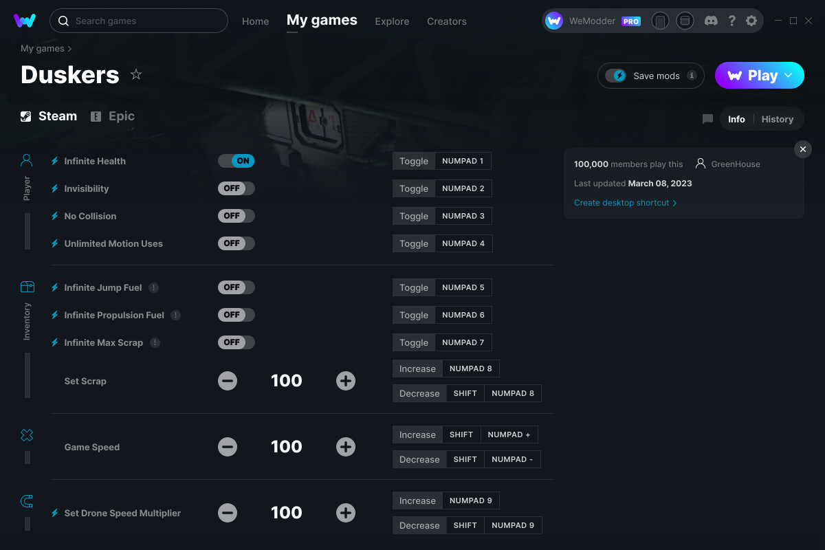 - В бесплатной версии читы включатся только хоткеями, они справа от названия чита.