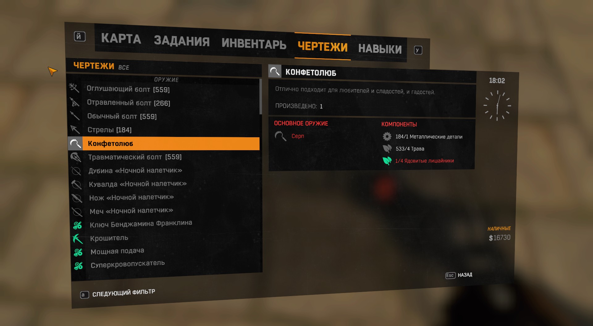 Народ,нашел костюм подписан как на Хэллоуин.Он заменят оружие и можно так давать другим игрокам.Два чертежа,один дробовик делается из дробовика,а другой ,,Конфетолюб". Как думаете когда активируют?