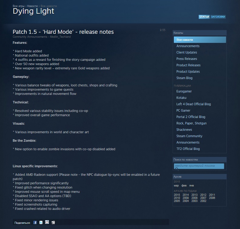 Патч пока вышел только для консолей. Ждём, когда Течлэнд, "родит" для PC.