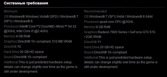 Примечание: Так как игра все еще находится в разработке,системные требования могут измениться.