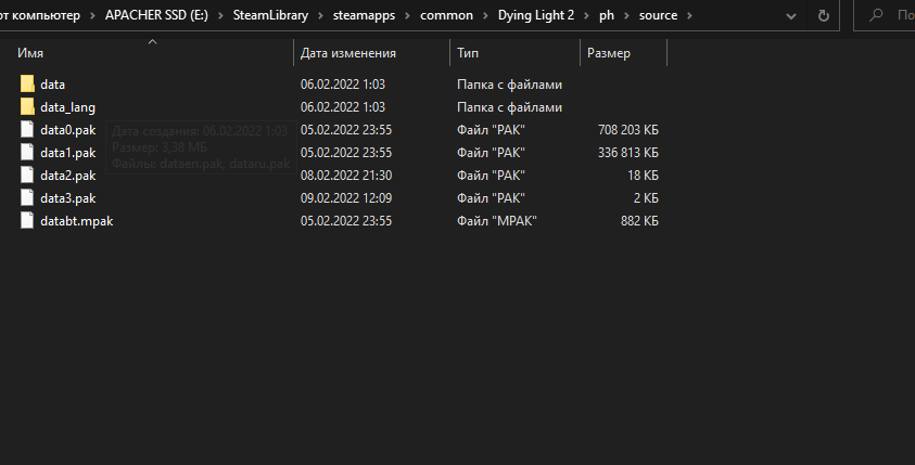 - Копируем файл "data0.pak" по адресу "...\Dying Light 2\ph\source".