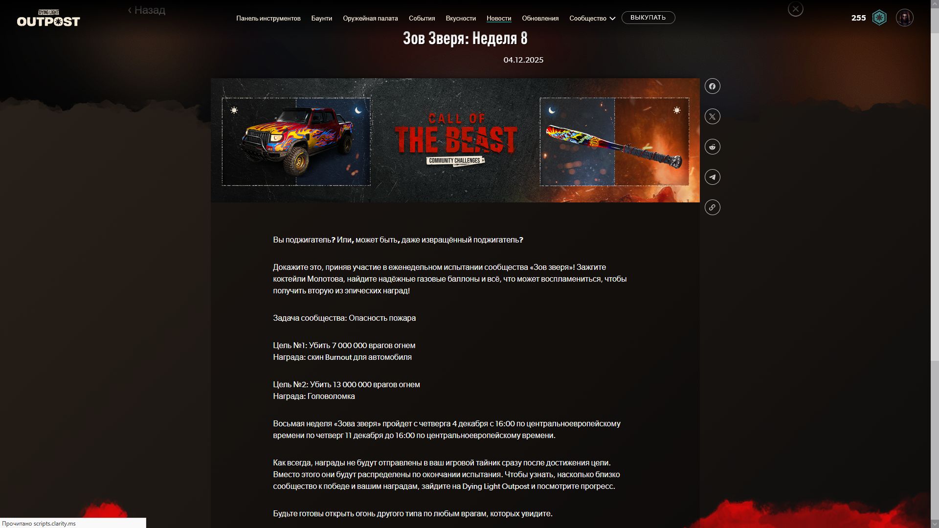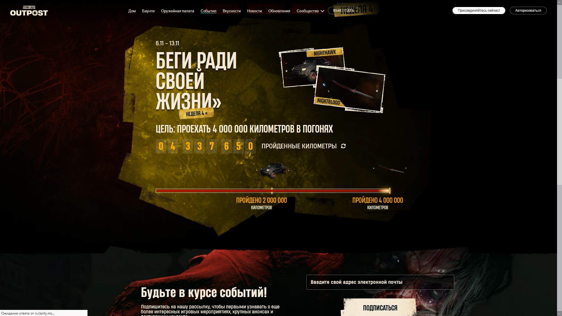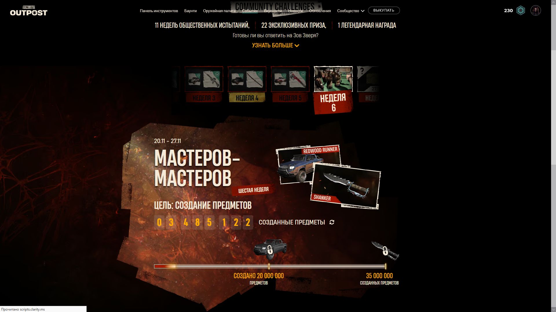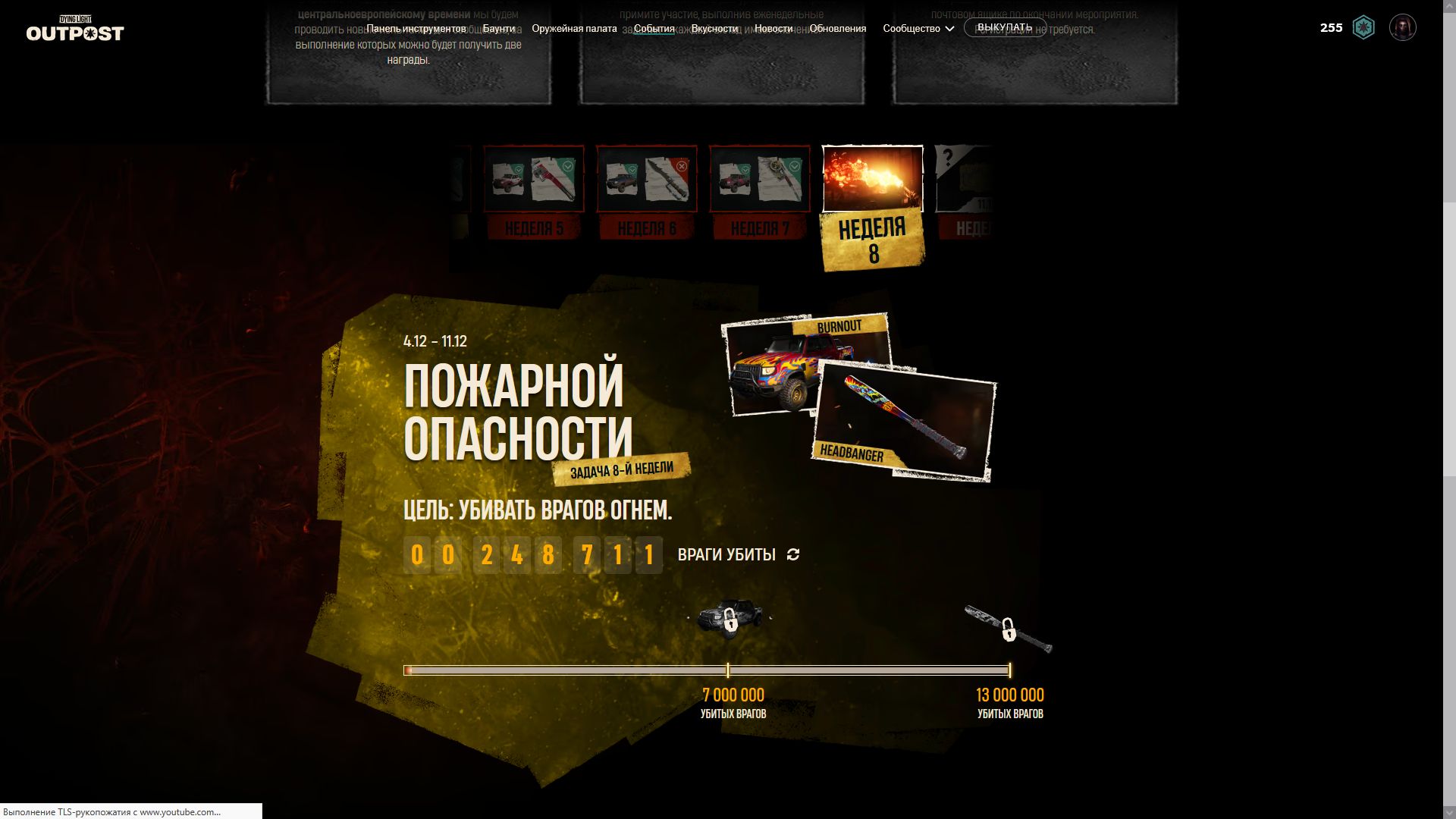 Началась 9я недели испытаний и по достижении цели [собирать предметы ночь] игроки получать чертеж ещё одной катаны и скин очередной скин для автомобиля. Ниже можно увидеть скрины всех предыдущих наград.