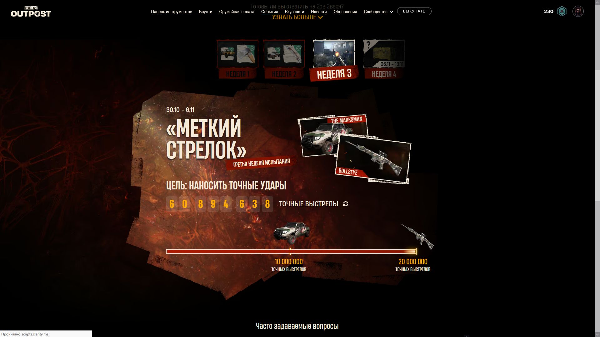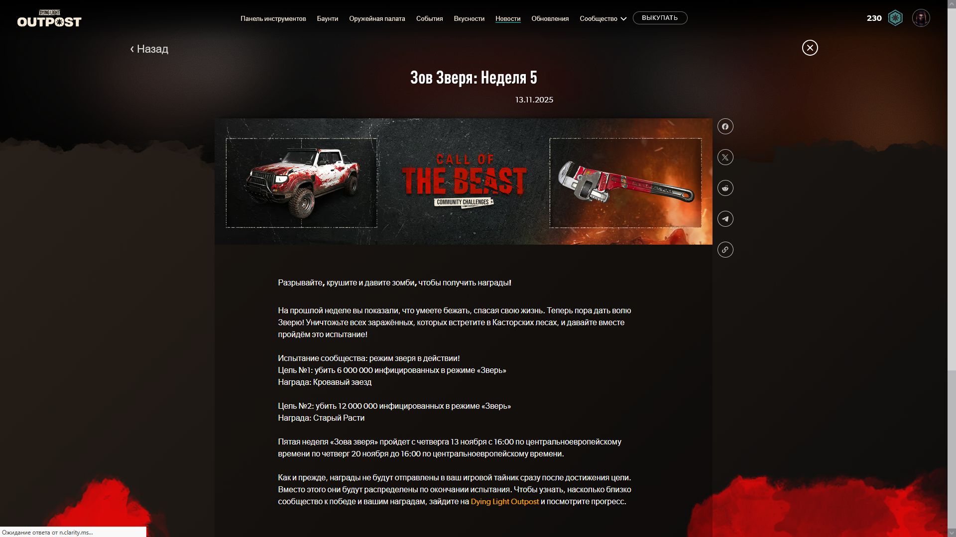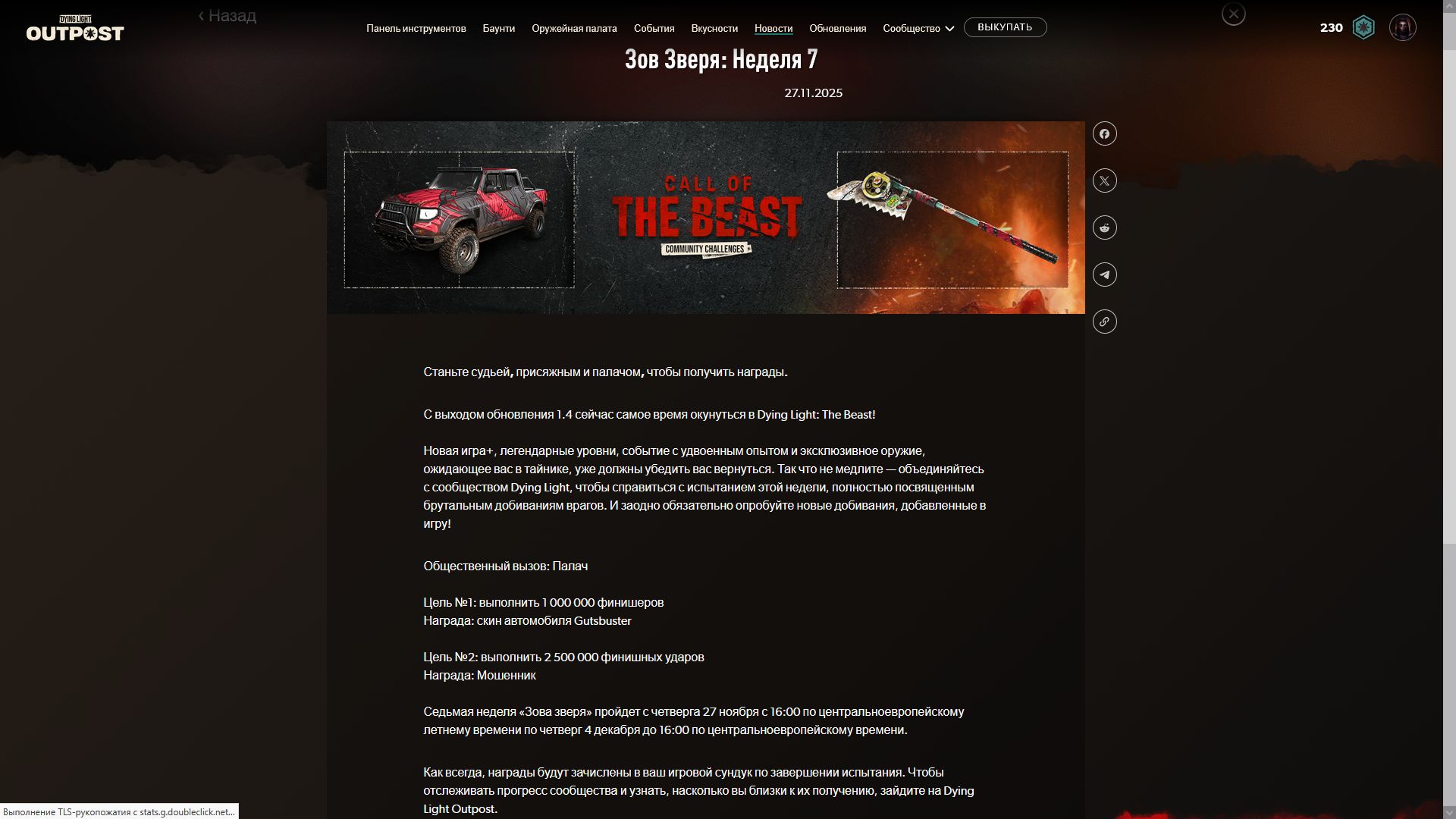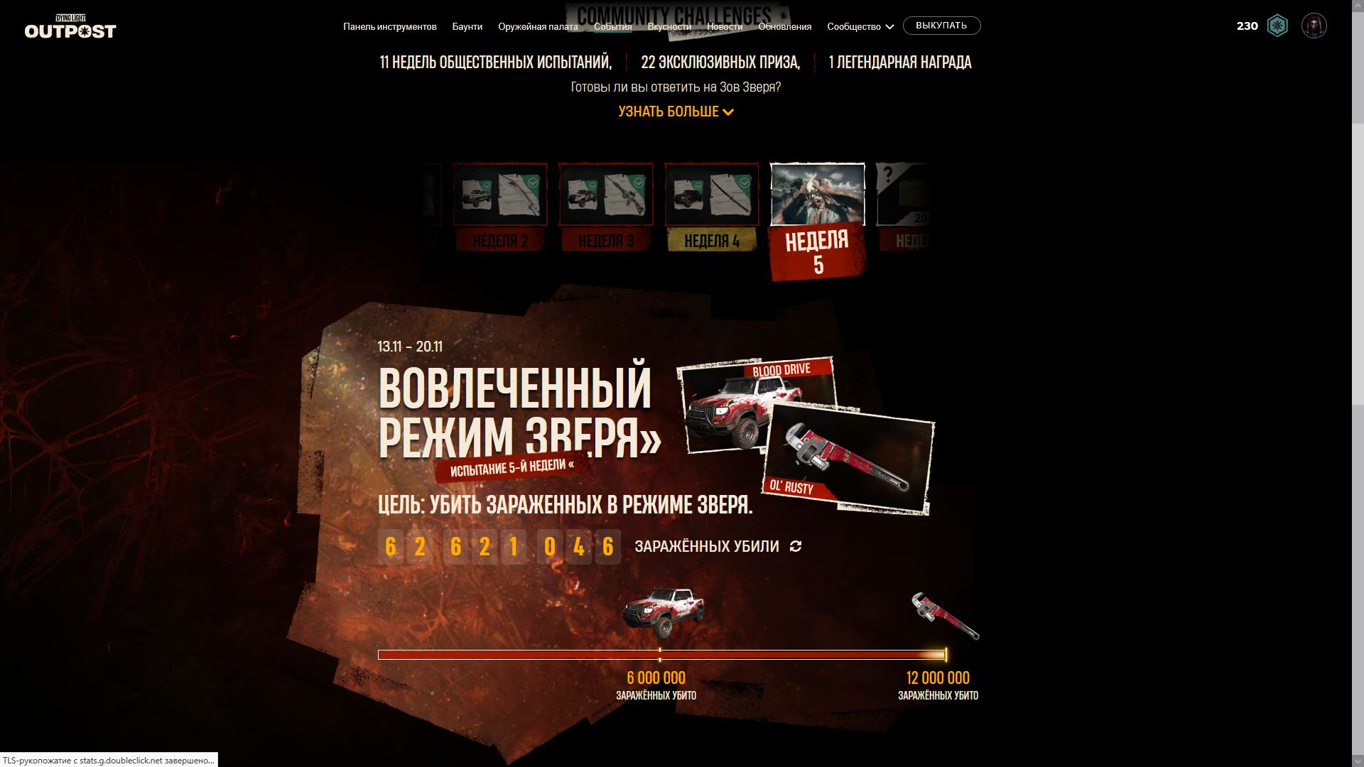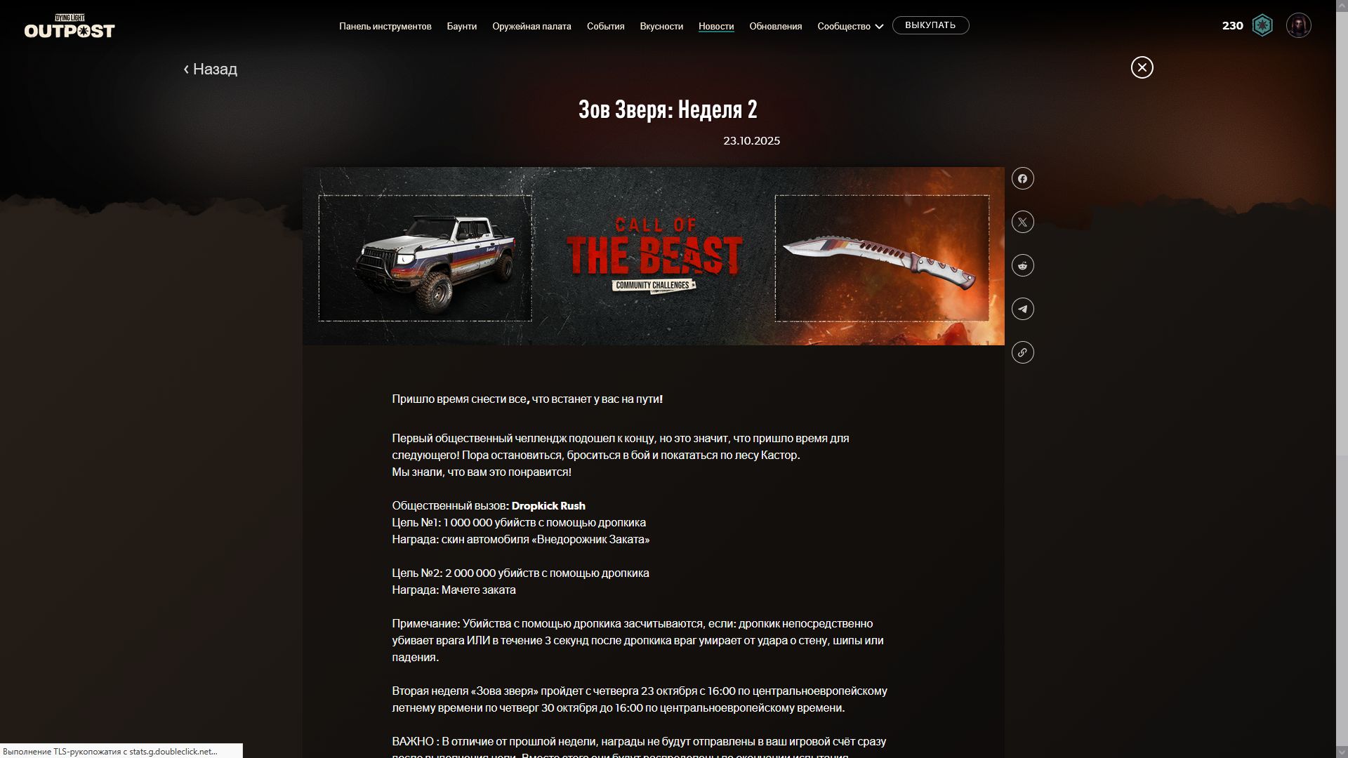 Началась 9я недели испытаний и по достижении цели [собирать предметы ночь] игроки получать чертеж ещё одной катаны и скин очередной скин для автомобиля. Ниже можно увидеть скрины всех предыдущих наград.