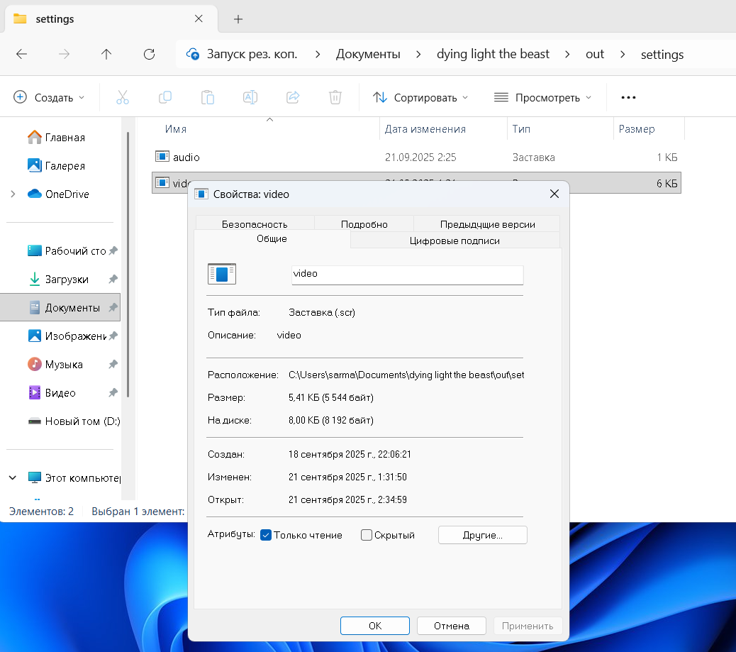 сохраняем файл, заходим в свойство video и ставим только чтение