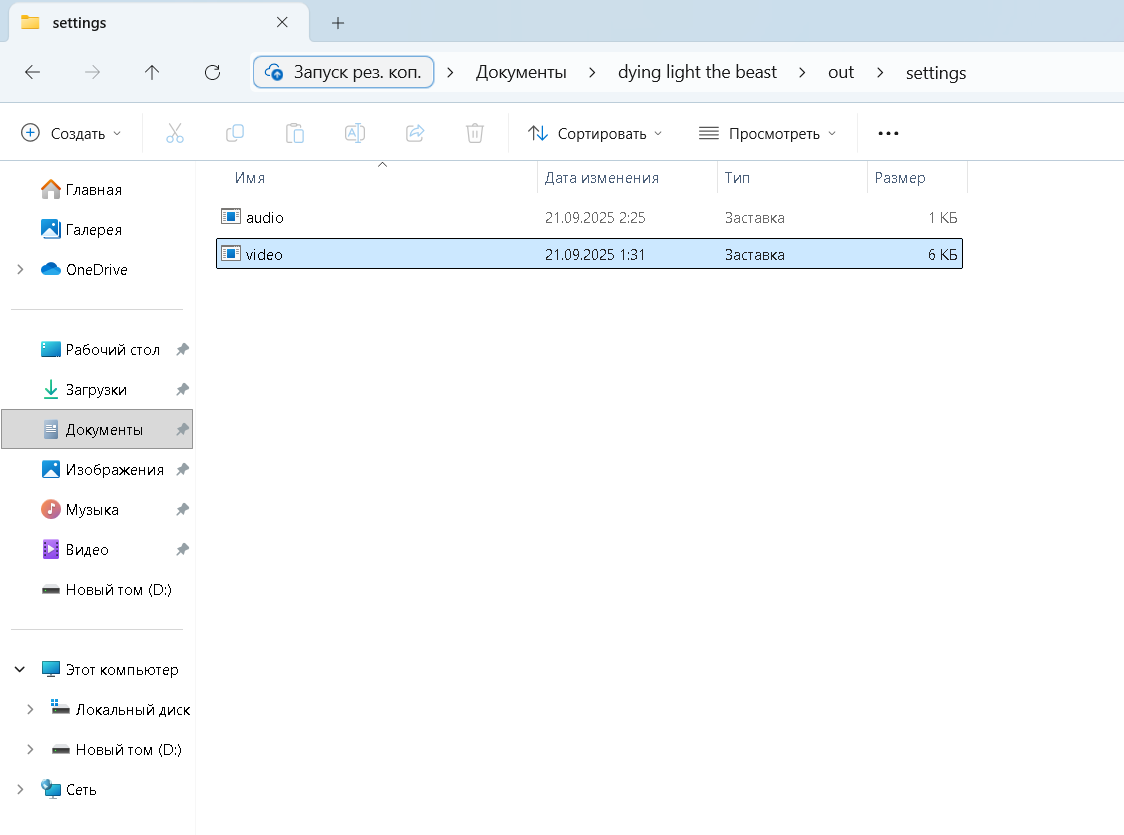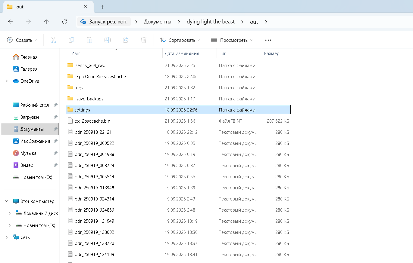 короче надо зайти в папки, документы, Dying light the beast, Out, settings