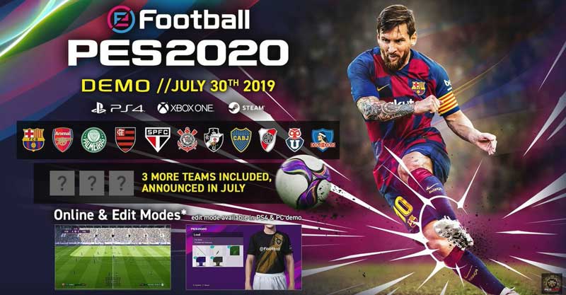 Konami, как и обещала, представила всю официальную информацию о демоверсии eFootball Pro Evolution Soccer 2020. И так, Версия игры Pes 2020 Demo выйдет во вторник, 30 июля. То есть, уже через месяц, мы сможем протестировать новую версию футбольного симулятора от Конами. Ниже приведем все подробности, которые касаются демо версии игры. PES 2020 Demo Официальная информация Demo PES 2020 будет доступна на Playstation 4, Xbox One и ПК во вторник, 30 июля. В демке будет всего 14 команд. 11 уже известны. Последние три клуба будут объявлены в июле и, вероятно, будут новыми партнерскими командами Konami. Будет доступен онлайн режим. Будет доступен режим редактирования, только на PC и PS4. Перечисляем те 11 команд, которые уже известны. Это: Арсенал, Барселона, Бока Хуниорс, Палмейрас, Фламенго, Сан-Паулу, Коринтианс, Васко да Гама, Ривер Плейт, Университет Чили и Коло-Коло. В общей сложности в режиме редактирования демо будет шесть лиг, с которыми наши пользователи могут редактировать их. И важная деталь заключается в том, что вы можете перенести свои отредактированные файлы из демо в финальную игру. Режим Edit mode в демо версии игры PES 2020 будет содержать следующие лиги! Всего 6 лиг! div. 1 & div. 2 Первый и второй дивизионы Англии. div. 1 Первый дивизион Испании. PEU league. PLA league. PAS league.