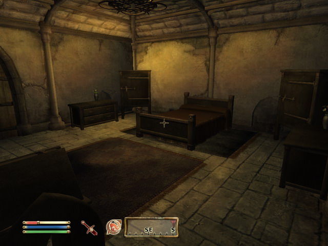 Всего в замке 6 комнат на втором этаже одна из них с шестью кроватями к каждой кровати по два сундука, одна(занята) в башне, одна в подвале(ухоженном).