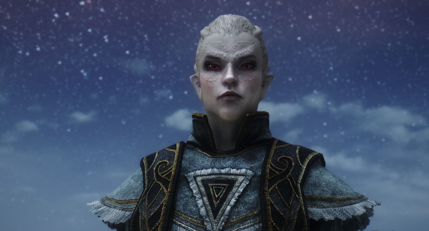 расивая данмерка бледноватого цвета в качестве компаньонки для Skyrim, которую можно встретить в многих квестах (главный и звезда Азуры). Обновлена внешность и уровень, теперь будет равняться 80, довольно сильный маг ледяной магии.