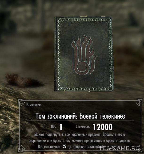 Мод добавляет в игру новое заклинание: Боевой телекинез. Мод рассчитан в первую очередь для магов.