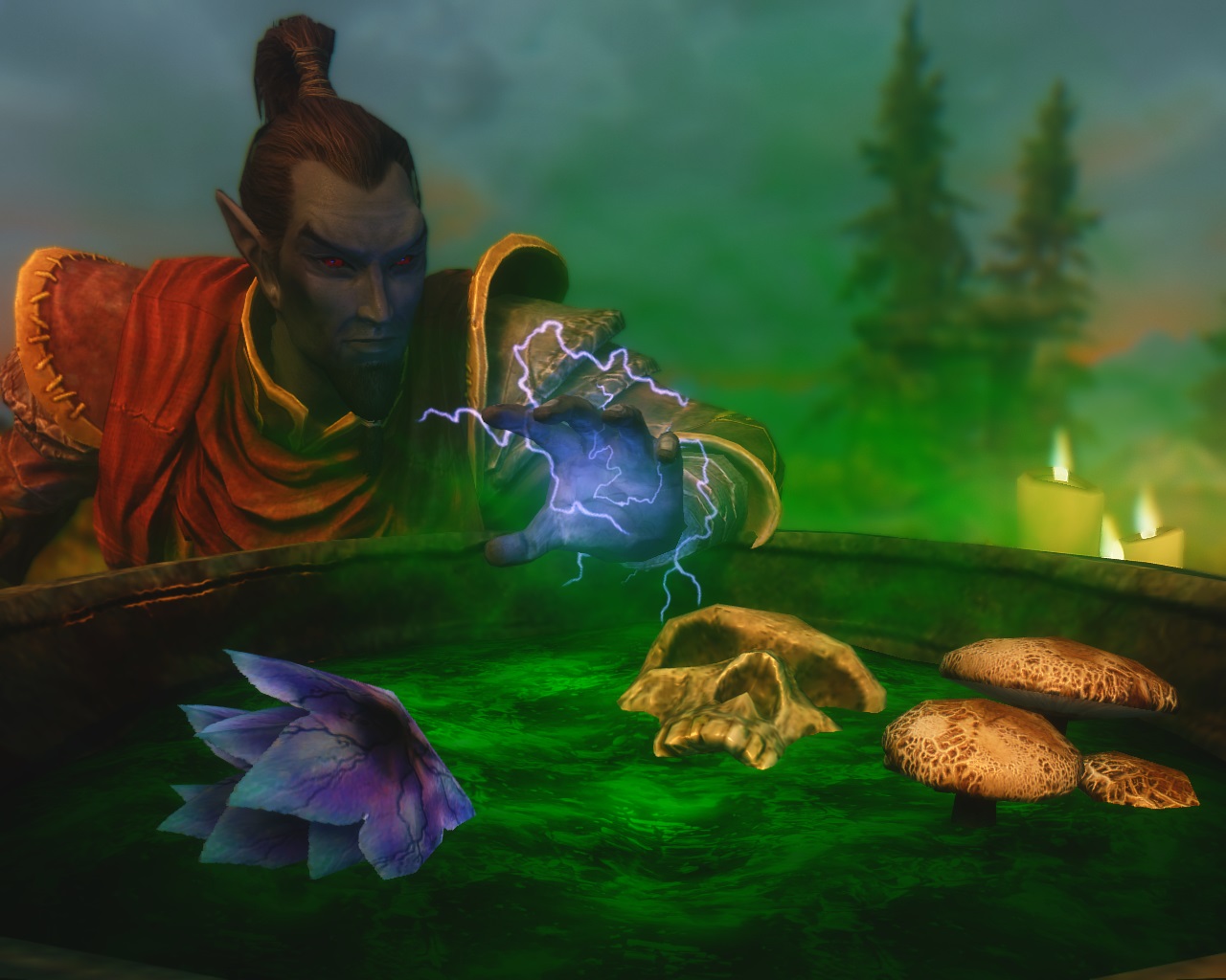 Рад представить вам данмера по имени Эринар - потомка волшебников из некогда великого дома Телванни. Последовав по стопам своих предков, он с ранних лет принялся осваивать чародейское искусство и странствовать по миру в поисках знаний. И вот, спустя десятки лет обучения, в том числе в Коллегии Винтерхолда и даже у самого Мастера Нелота, Эринар обосновался в таверне "Пьяный Нетч", что в Вороньей Скале. Но кто знает, быть может, ему захочется вновь отправиться в путешествие вслед за каким-нибудь отважным искателем приключений. Ведь для настоящего волшебника поиск знаний и колдовского могущества не заканчивается никогда...