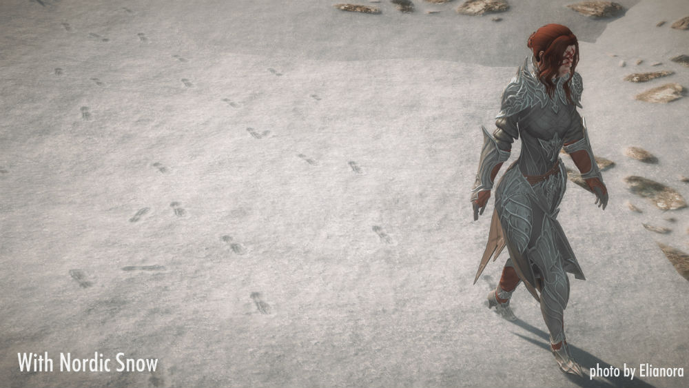 • Система будет автоматически отключать эффекты для любого поддерживаемого материала (снега, пепла и т.д.), где это не нужно. Это включает в себя такие места, как Рифтен, Маркарт, Солитьюд, Вайтран и окружающих их экстерьеры. Я буду продолжать добавлять места, которые считаются подходящими, в будущих обновлениях.