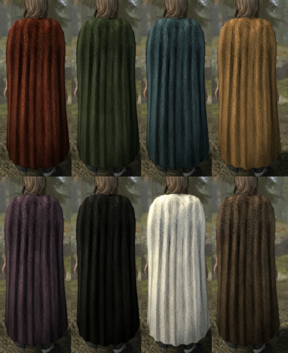 Мод добавляет в Skyrim новые меховые плащи и льняные накидки для всех рас и обоих полов.