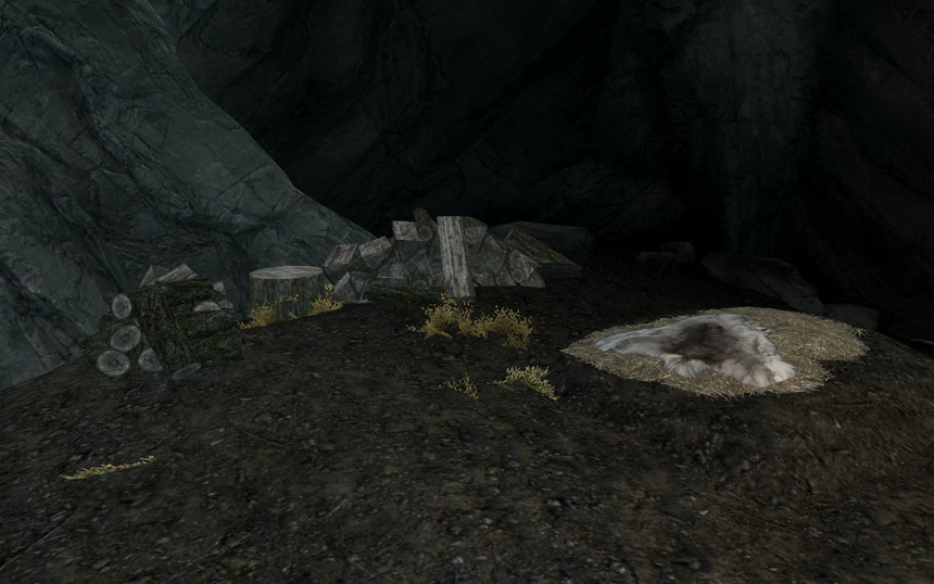 Небольшая пещера без загрузочного экрана в близи Вайтрана, рядом с останками умершего алхимика.