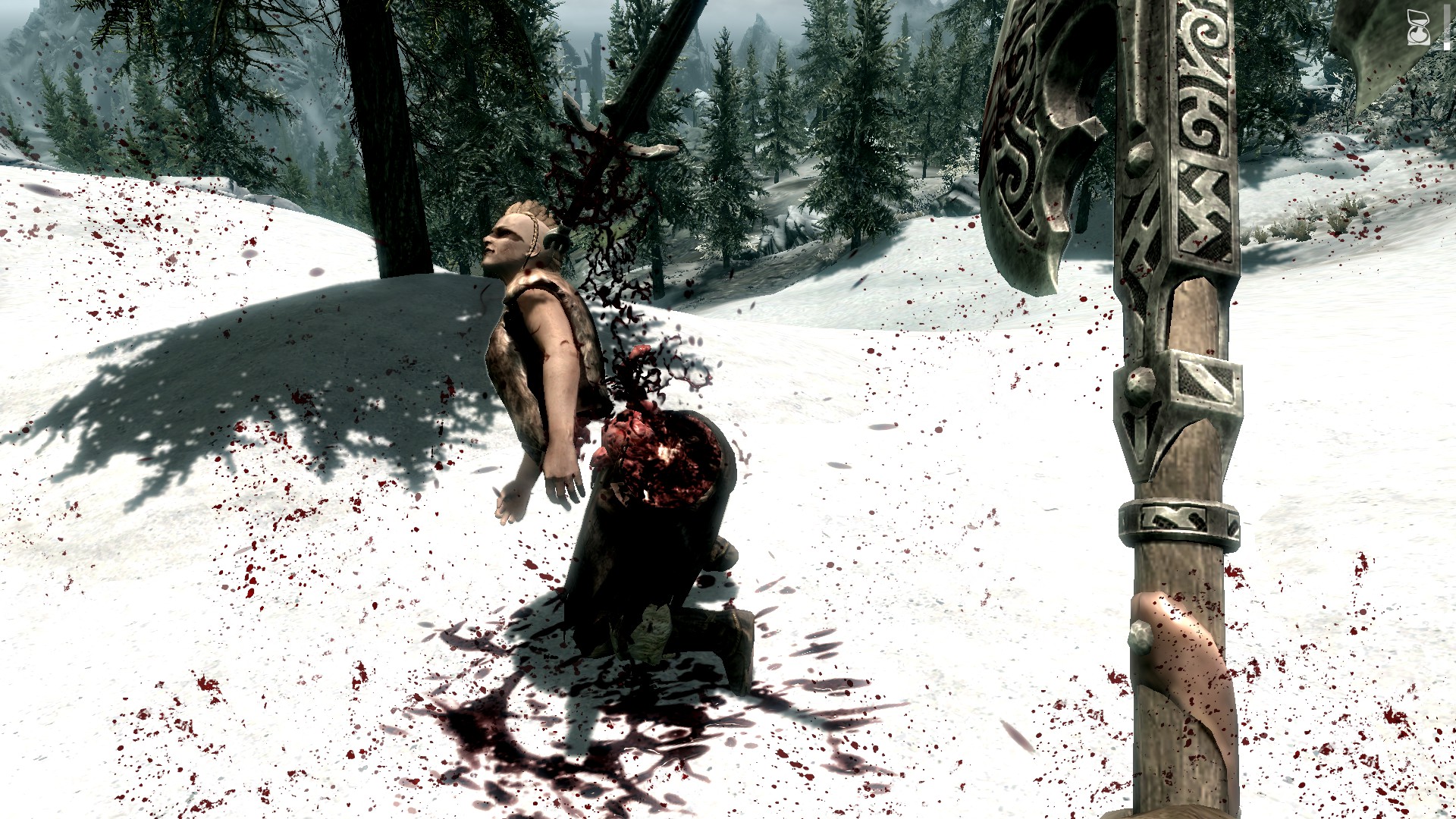 Мод позволит вам в Skyrim наносить смертельные увечья вашим врагам.Рубить пополам, расчленять, отрезать головы, ноги, руки и т.д.Те же самые повреждения. но теперь с визуальными эффектами.Процент нанесения увечь зависит от вашего навыка того или иного оружия.Также можно разрубить противника с помощью некоторой магии, или просто сжечь его.