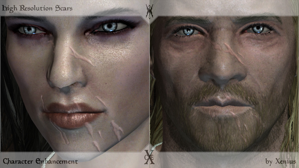 Заменяет старые текстуры шрамов. Новые текстуры были нарисованы вручную по референсам старых и имеют размер 1024х1024 против оригинальных 128х128.