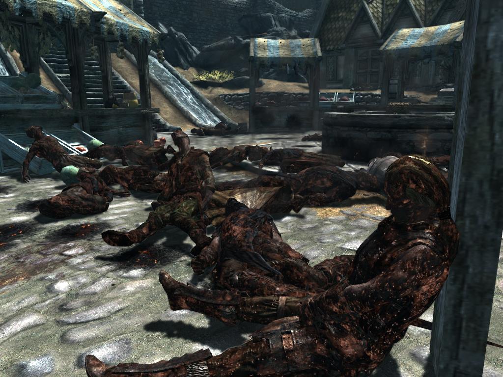 Мод добавляет эффект обгоревших, замороженных и наэлектролизованых тел. В зависимости от какой стихийной магии умер NPC. По умолчанию для отображения эффектов требуется перк усиленное(ый) пламя, мороз и молнии.