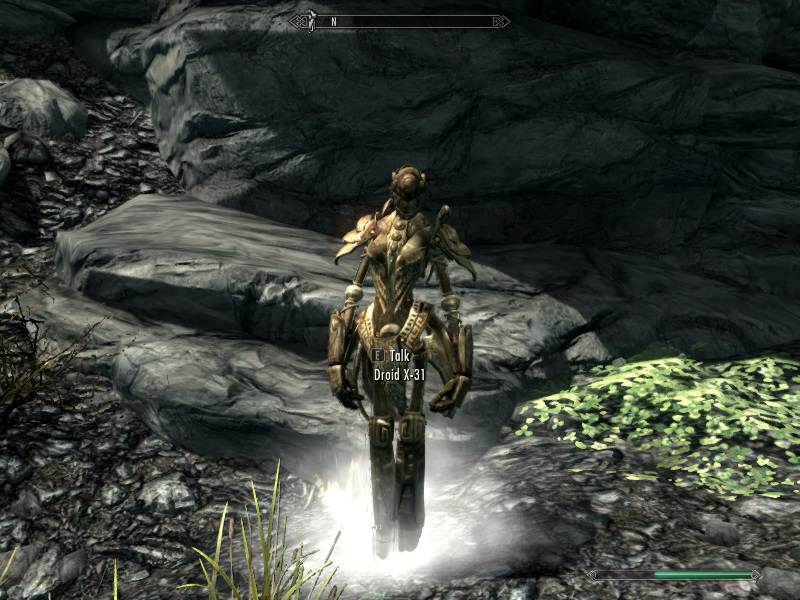 Робот хорош,но вот не стоило по современному называть "Droid X-31".Лучше бы называл "Летающий двемерский робот".Хотя бы оригинальнее звучит))