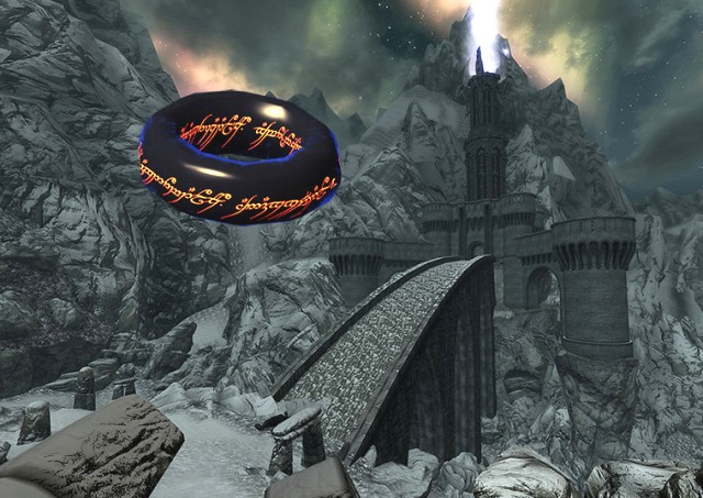 2.) В мир Скайрима добавлена башня Ортханк (к востоку от Рорикстеда). Она охраняется гарнизоном Урук-Хаев. В её подвале находятся кузни, где день и ночь трудятся орки, с которыми можно торговать. В башне Вы встретите Сарумана. Рядом с башней расположена лесопилка, рабочие носят дрова в Ортханк.