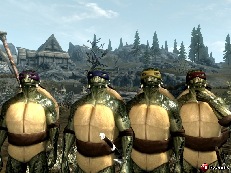 Мод добавляет четыре компаньона аргонианина (Леонардо, Донателло, Рафаэля, Микеланджело).