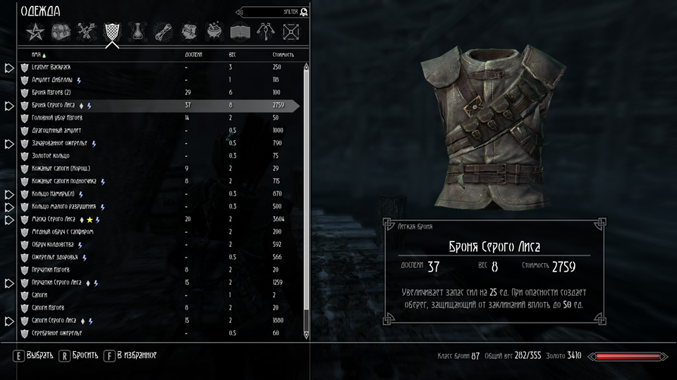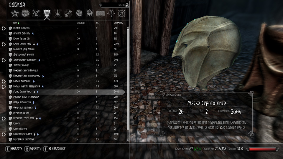 • Добавляется маска Серого Лиса и сет серой брони гильдии воров. Найти информацию о том, где лежит маска, можно найти в бюсте Серого Лиса в "Буйной Фляге" в цистерне гильдии воров, на верхней полке стилажа, главы гильдии Мерсера Фрея.