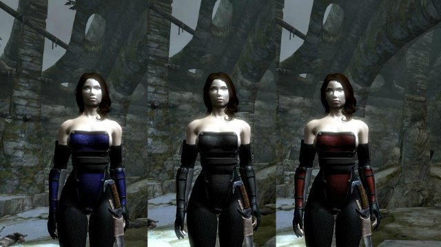 Я ставил себе чёрную - сапогов для этой брони нету так что я одевал туфли на шпильках - короче костюм очень секси.