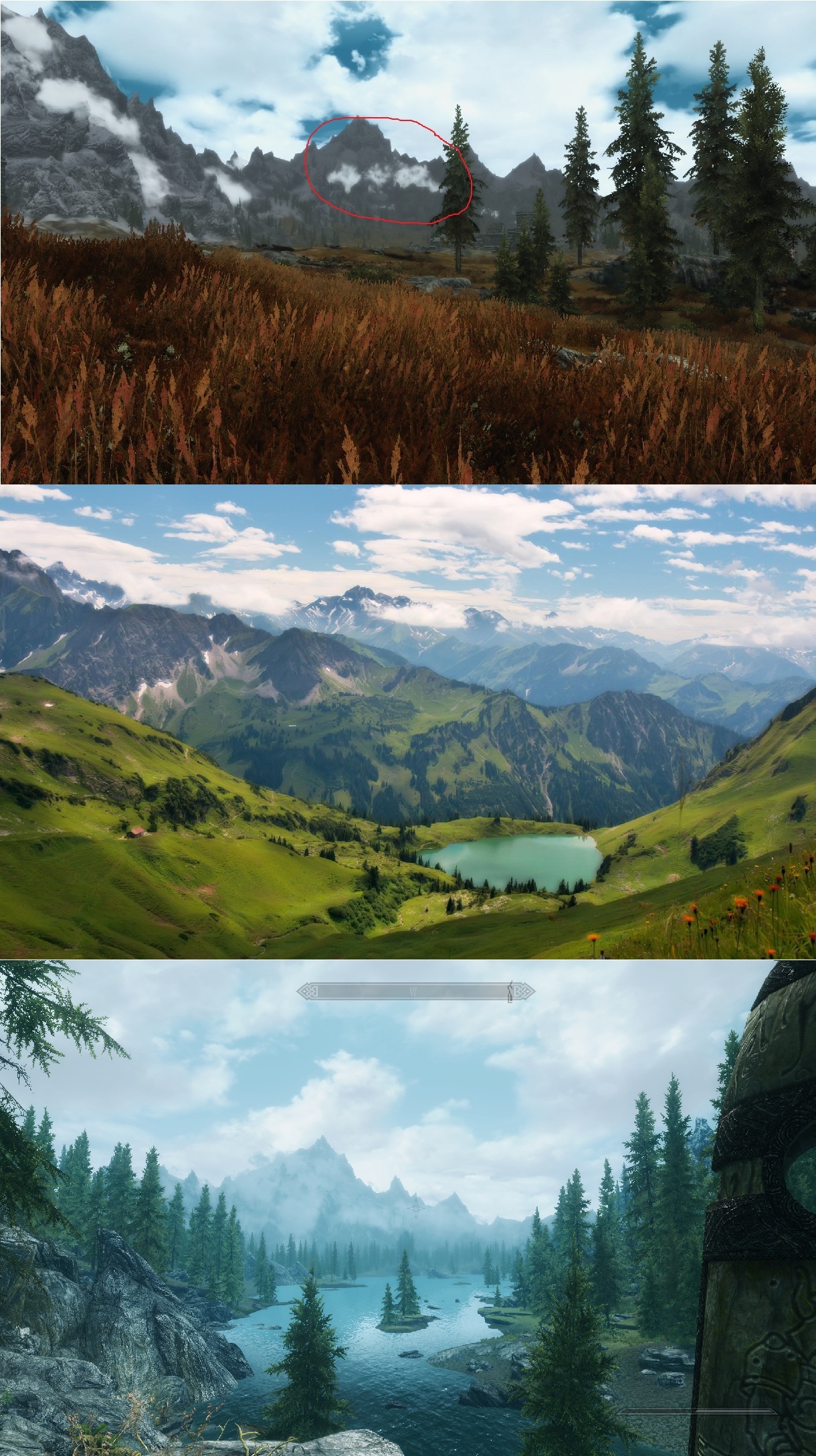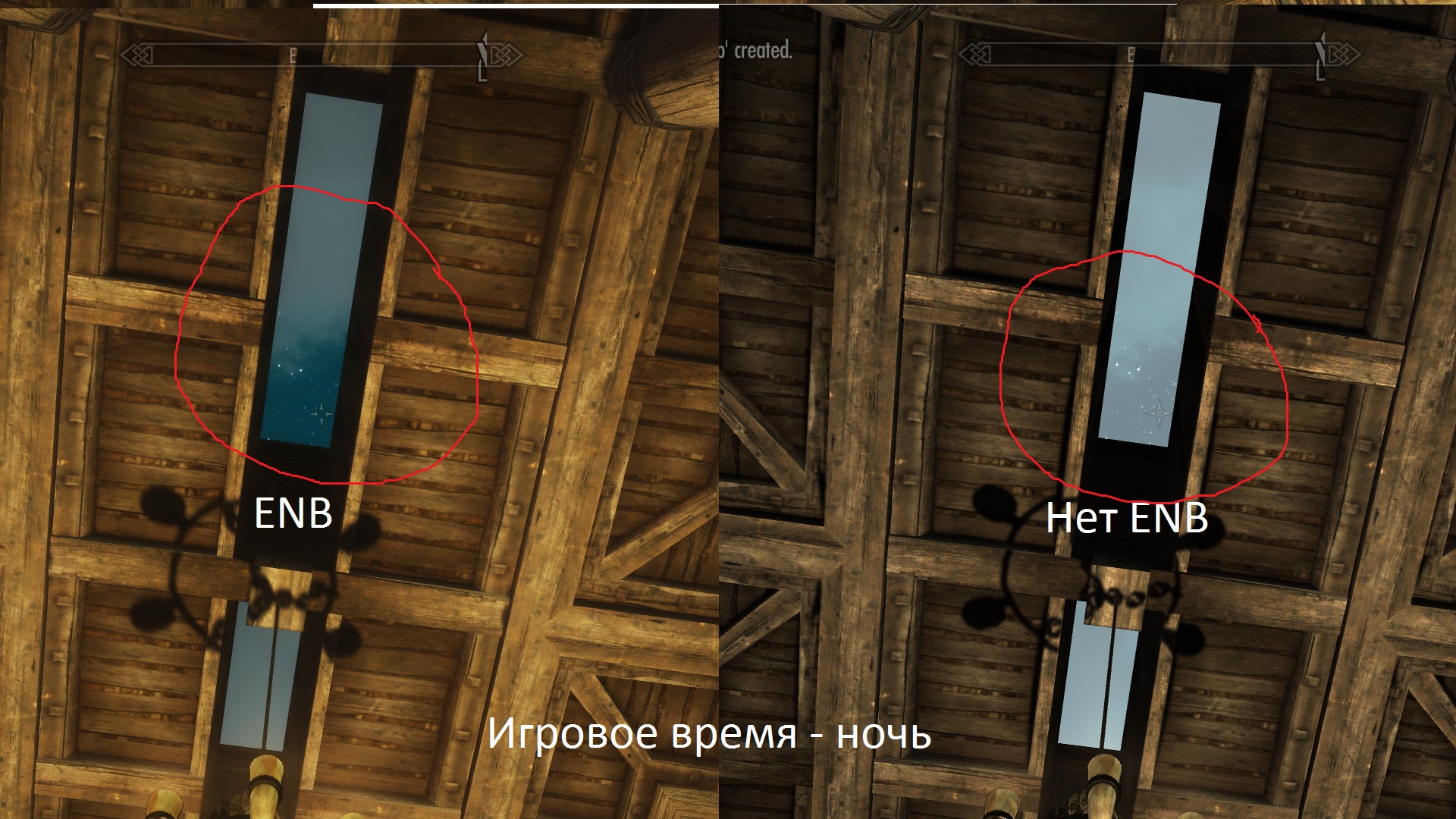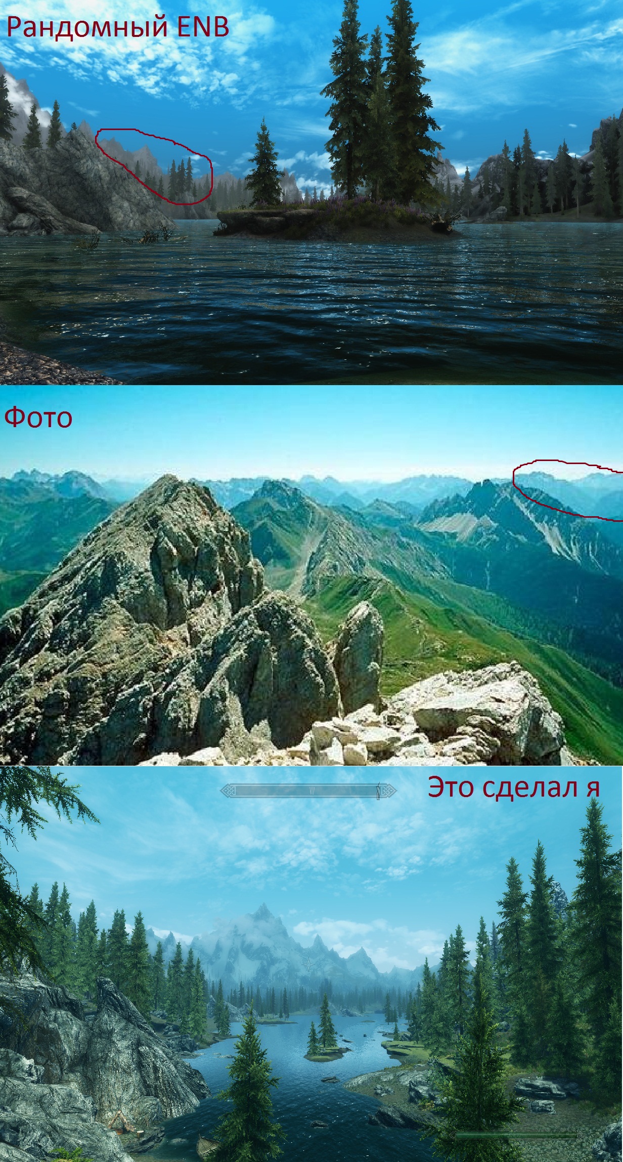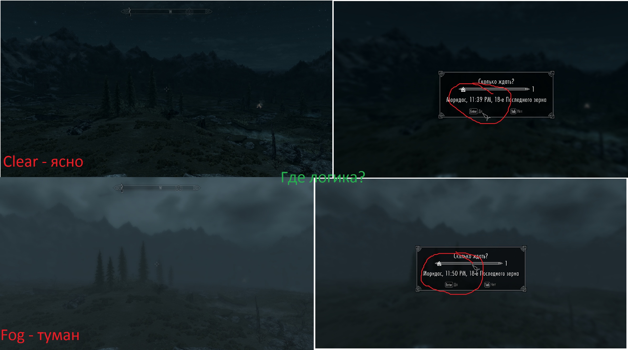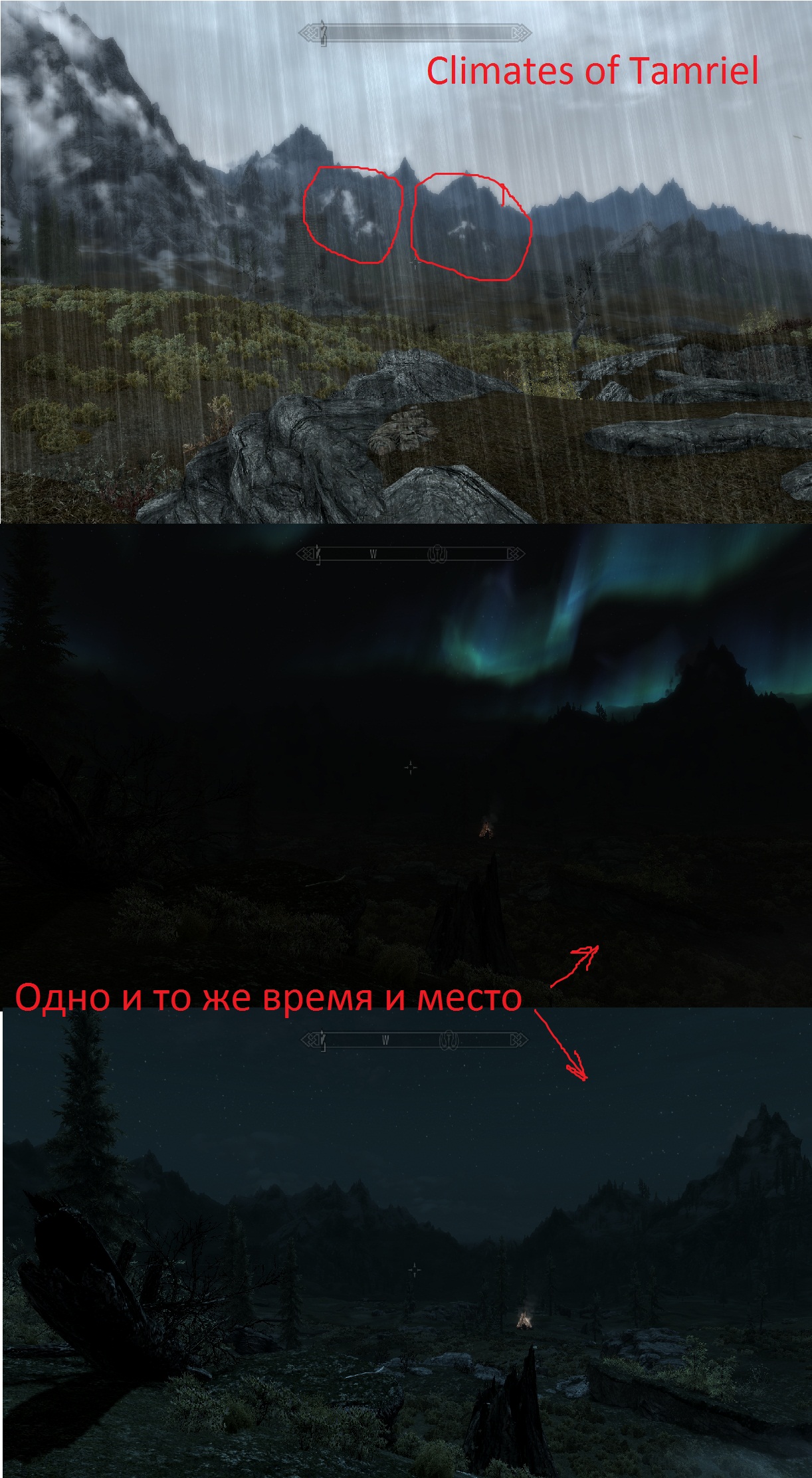- Облачный день (вверху рандомный ENB, внизу мой плагин)