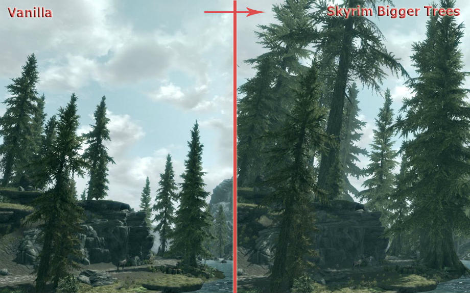 - SkyrimBT - во всем Скайриме будут большие деревья (намного больше игровых, везде, кроме области Рифтена)