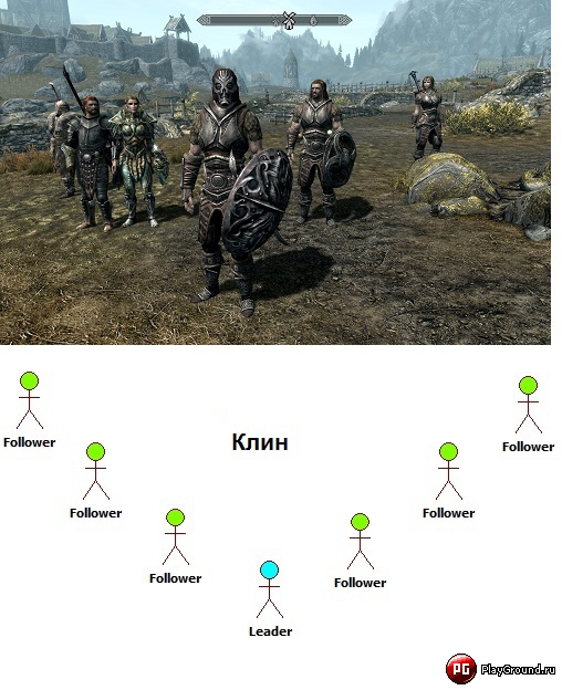 6) Выберете отряд дважды, что войти в стандартный режим подачи сигналов Skyrim