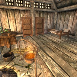 В жилище есть алхимическая лаборатория, манекен и две стойки для оружия, кровать. Во дворе все для крафта. Работа делалась с нуля несколько раз. Это мой первый подобный мод, важно ваше мнение.