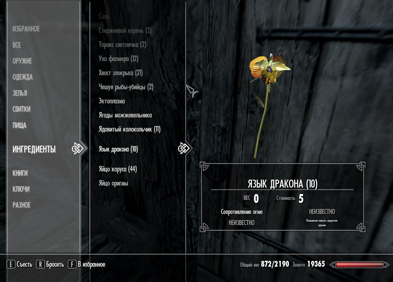 Описание: Алхимические ингредиенты; кости, чешуя и когти дракона; квестовые предметы; еда; руда и слитки становятся невесомыми.