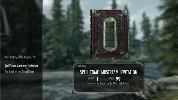 Новое интересное заклинание добавиться в виде книжки к вам в инвентарь при первой активации мода, автор утверждает, что это было сделано для того, чтобы не возиться с поиском заклинания у торговцев, также оно имеет ограничение на полёт, 100 футов максимум, но этого всё равно достаточно, чтобы пересекать малые и средние дистанции.