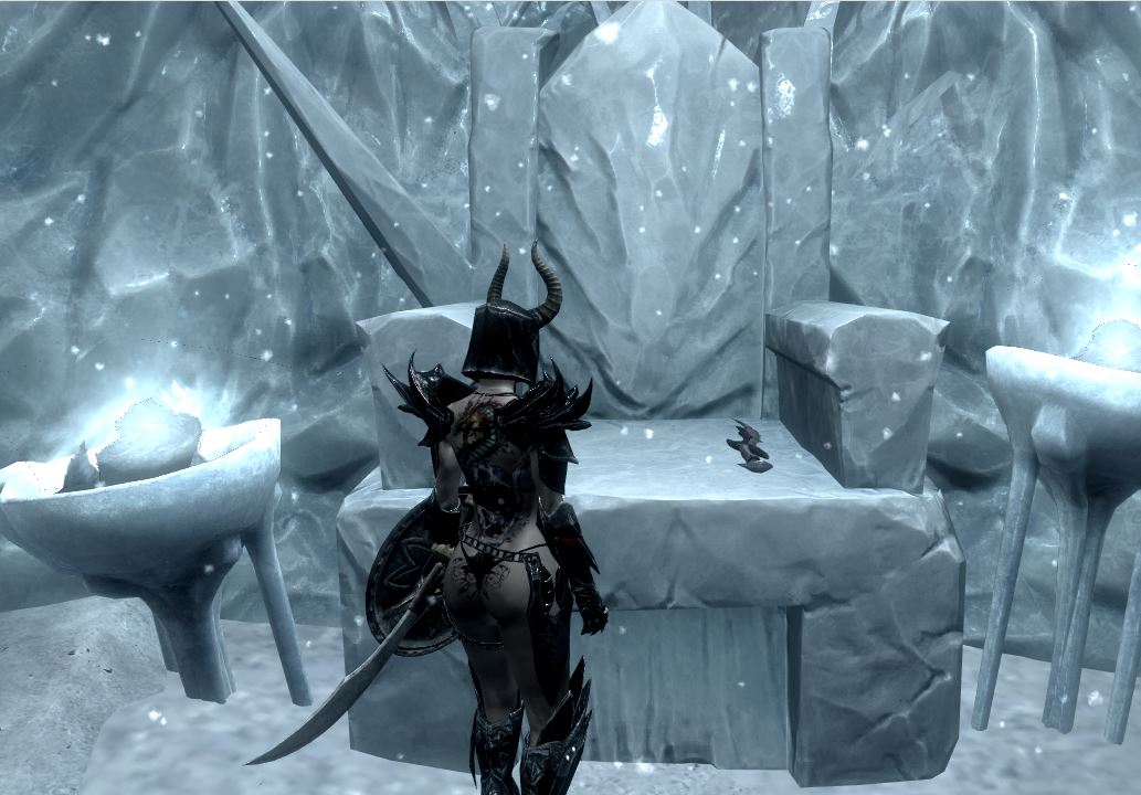 В Сети ходят байки, о том, что Беседка планировала *дать* Мираку не тот меч, с которым мы сталкиваемся в игре, а другой... В файлах Драконоборна там и сям проскакивал то сам меч, то его заклинание, то привязанный к нему эффект... После объединения всех составных и получилось, то что получилось. Меч, истинная сила, которого раскрывается после крика *Бесплотность* - Файм Зи. Увеличевается скорость, критический урон меча, приобретается кратковременное доминирование над противиком и увеличевается шанс Фаталити. Ищем на кресле Карстага. Для атмосферности можете призвать и убить его, а можете и просто забрать меч... это оффверсия.
