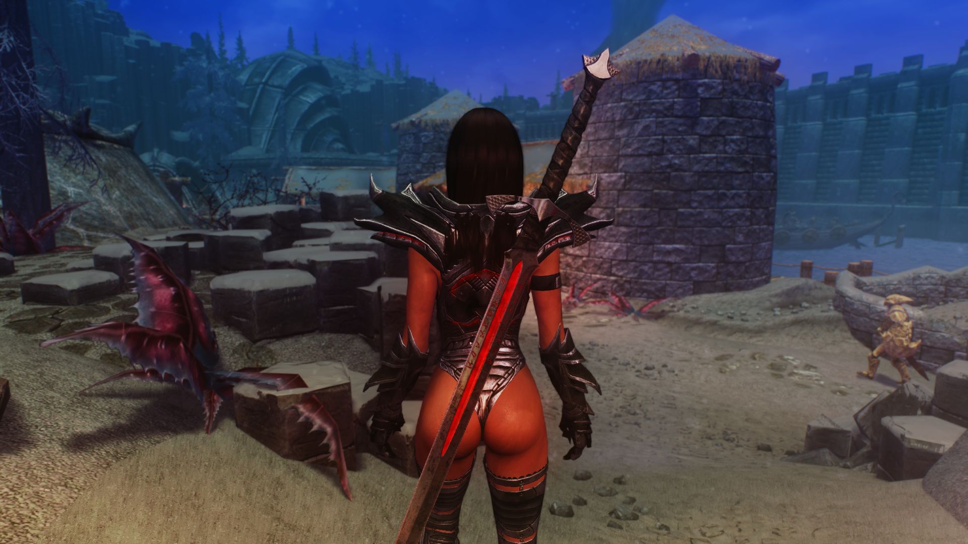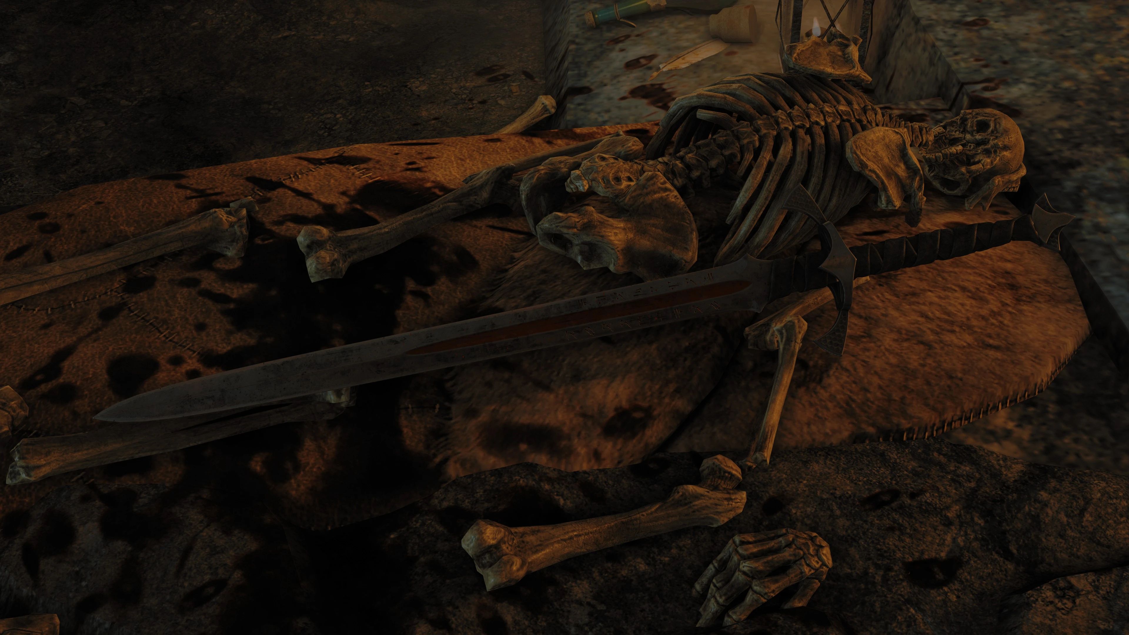 Модификация добавляет красивый ретекстур двуручного меча Бладскал. В доп файлах есть версия без свечения а также кожаные ножны.