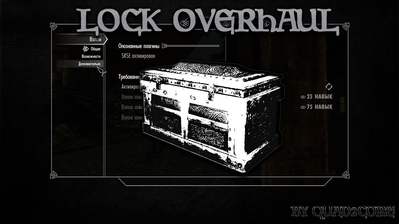Когда данная функция активирована взлом замков требует определенный уровень навыка (в зависимости от типа замка и выбранных вами настроек) Если ваш навык не достаточно развит, то вы 100% не сможете взломать замок.