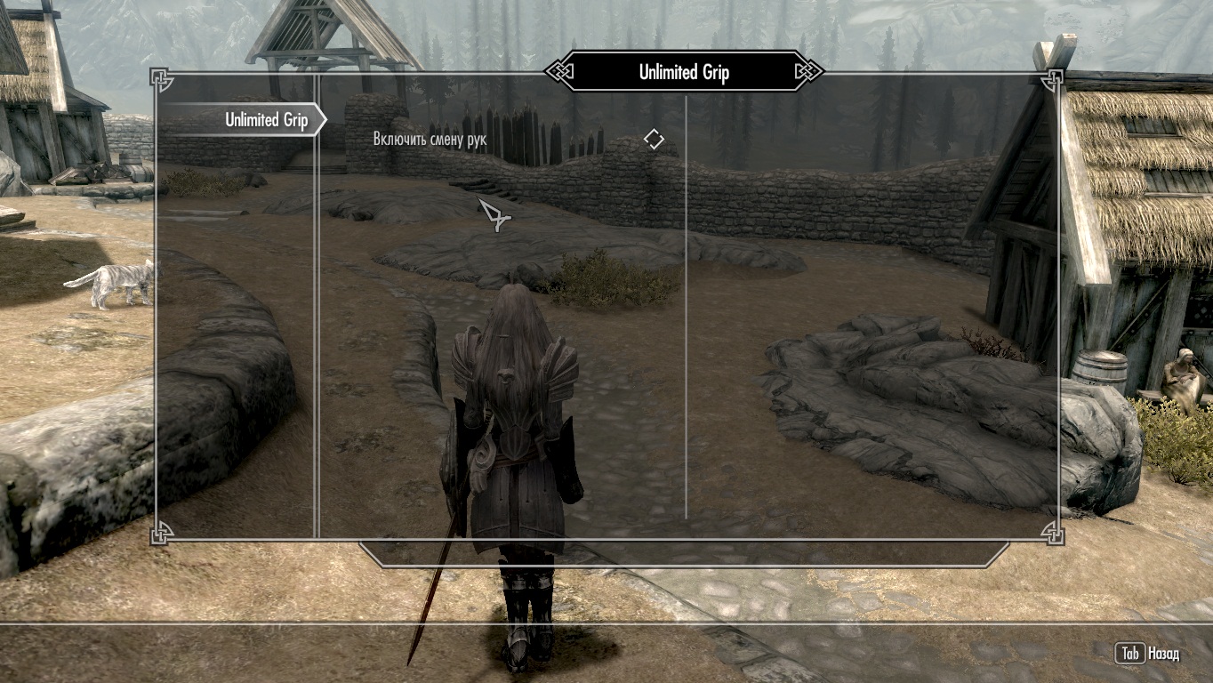Завязывать с этим и поставить SkyUI. Но если вы принципиальный ненавистник SkyUI, то лечись, гребаный псих можно и по другому — вводите «help Unlimited» и ищите строчку с Unlimited в имени. Затем ищите Unlimited Grip с идентификационным кодом. Затем введите «player.addspell XXXXXXXX» — где вместо иксов — идентификационный код. Появится заклинание, используйте его и следуйте подсказкам. А лучше установите SkyUI, потому что я уже, нахрен, сама запуталась в написанном.