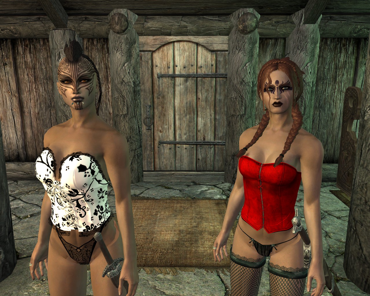 7 Алеена и 8 Вирана (Нордки) Кожа: Кожа Светлая Кожа Тело: CBBEv3 Мышцы: UNP Фитнес-Тело Алеена: 1 ручные Мечи Вирана: 2 ручные Мечи Можно взять в жёны Девушки ждут вас в Храме Кинарет в Вайтране