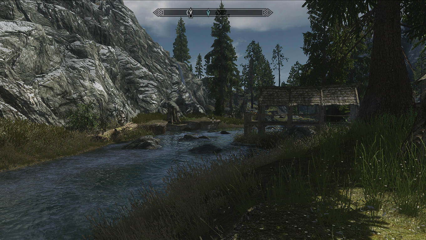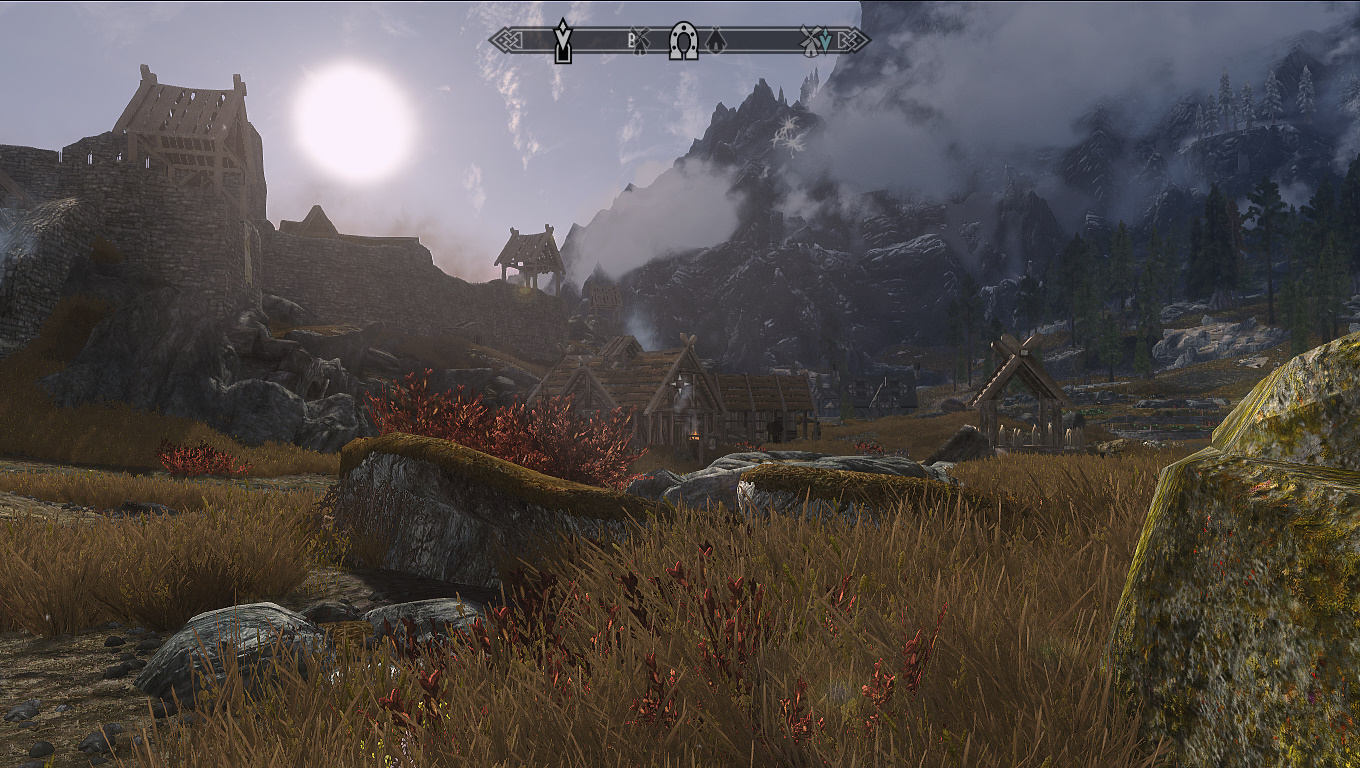 Как минимум надо поминять dof. ну и траву времен Обливиона. И лук снести к херам.