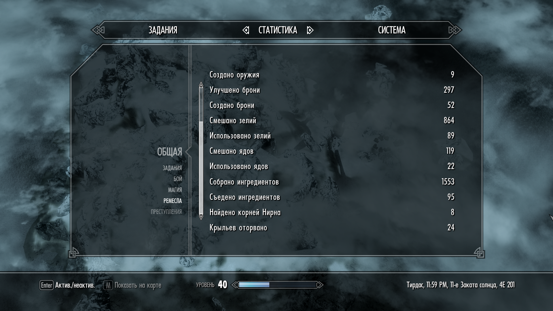 Можно облачиться в одеяния магов и вообще весь инвентарь выбросить, пользоваться школами магий, их тоже огромное количество, а также алхимией, которую нужно прокачивать, опять же, зельями, варить тонны ненужного хлама (что я и сделал), пить / продавать / выбрасывать, снова варить, собирать ингредиенты, прокачивать уровни, лучше забить и пользоваться найденными зельями.