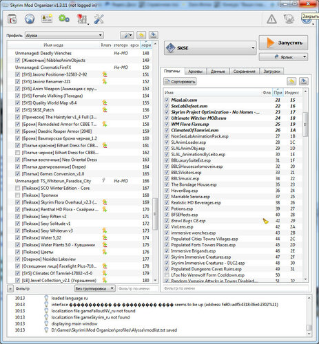 Потом всякие движки типа OSA, SLab, FNIS и т.п. Дальше собственно анимации, дополнения для модов. В самом конце надо ставить моды на вещи (броня, мечи и т.п)