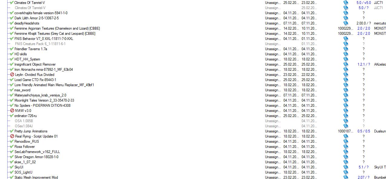 На скайрим у меня установлено немало модов, НО когда решил попользоваться Skyrim mod organizer'ом, сначала было все хорошо, а потом когда решил установить последние несколько модов через него(climates of tamriel, AHZmoreHUD, ordinator, load game CTD, SMIM, vivid weathers) у меня появились треугольники и вылезала ошибка связанная с модом vivid weather(не было каких-то текстур). Решил удалить через папку, т.к. mod organizer слишком непонятен был, да и моды перенесенные с NMM не отмечались должным образом. Скайрим стал запускаться, но ошибка оставалась. Через NMM вырубал по каждому моду, но результатов не было, помогите решить! Список модов предоставлю.