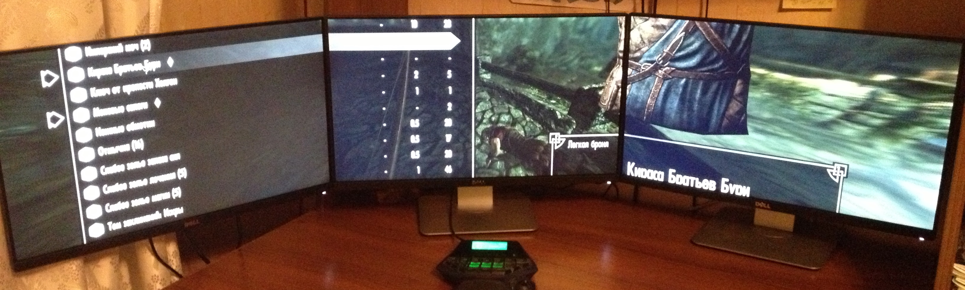 Запустил Scyrim на 3 мониторах. Разрешение - 5840 х 1080, всё отлично играло.