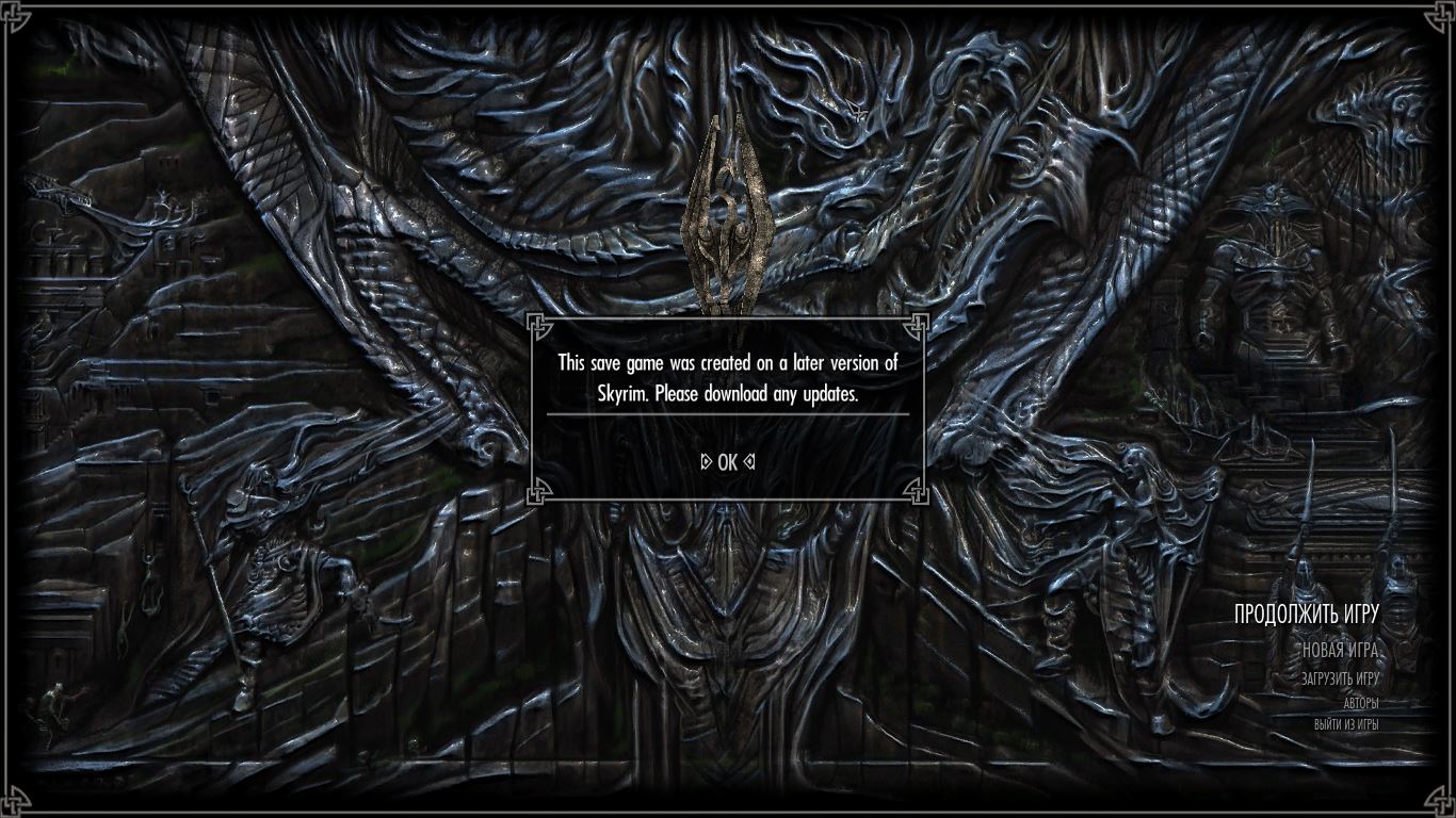 недели 2 назад скачал репак от хаттаба, установил и играл. были проблемы с текстурами и персонажами, хотел установить моды, но консолька не работала. пока пытался починить, чуть не сломал себе ноут (пока менял настройки языка) и 2 раза сломал игру (редачил файлы). надоело. скачал репак SLMP, установил, всё норм, сначала просто запустил игру, всё нормально, всё работает. заменил пустую папку сохранений на папку от другого репака, которую благоразумно сохранил. запускаю игру, жму продолжить, и тут вылезает то, что видно на фото. стал проверять версии. СЛМП 1.9, а репак от хаттаба пропатчен до 1.6 (или 1.5). возможно, я не так понял описание, но это версия, вроде как.