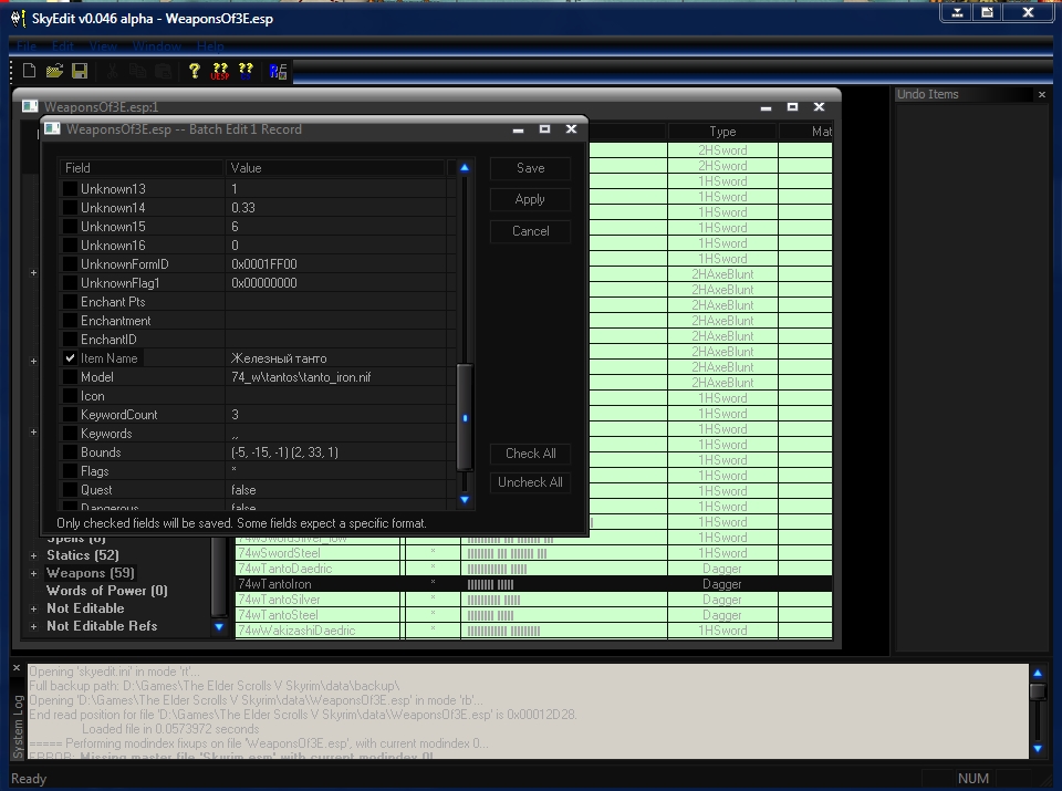 А для того, чтобы не бороться с множеством "вертикальных палок" в названиях, и не искать предмет/объект/ячейку по FormID, полезно создать дубликаты всех файлов в папке Strings, и присвоить им префикс _English. Тогда все названия в редакторе станут на русском, и в то же время игра не будет вылетать...