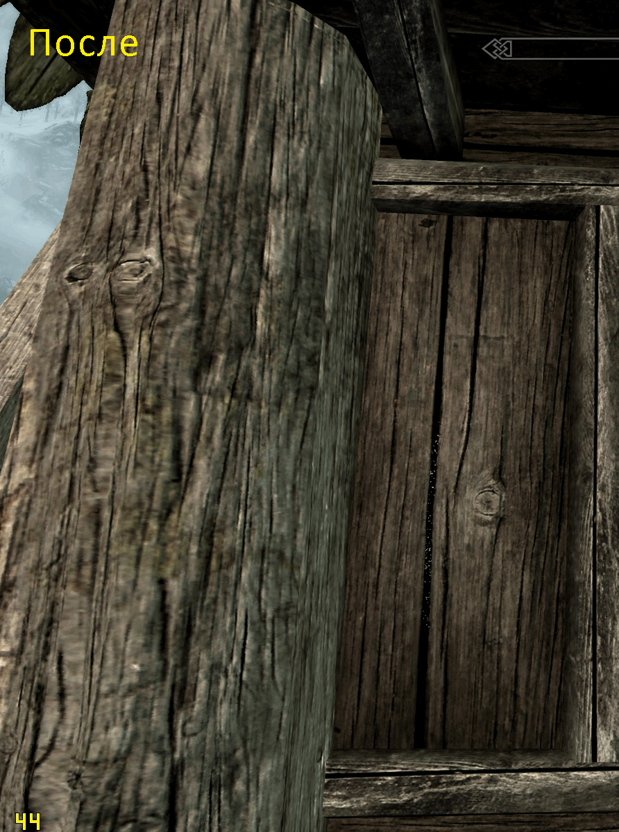 но на кадре "после" вылез косяк с текстурой камней - появился шов