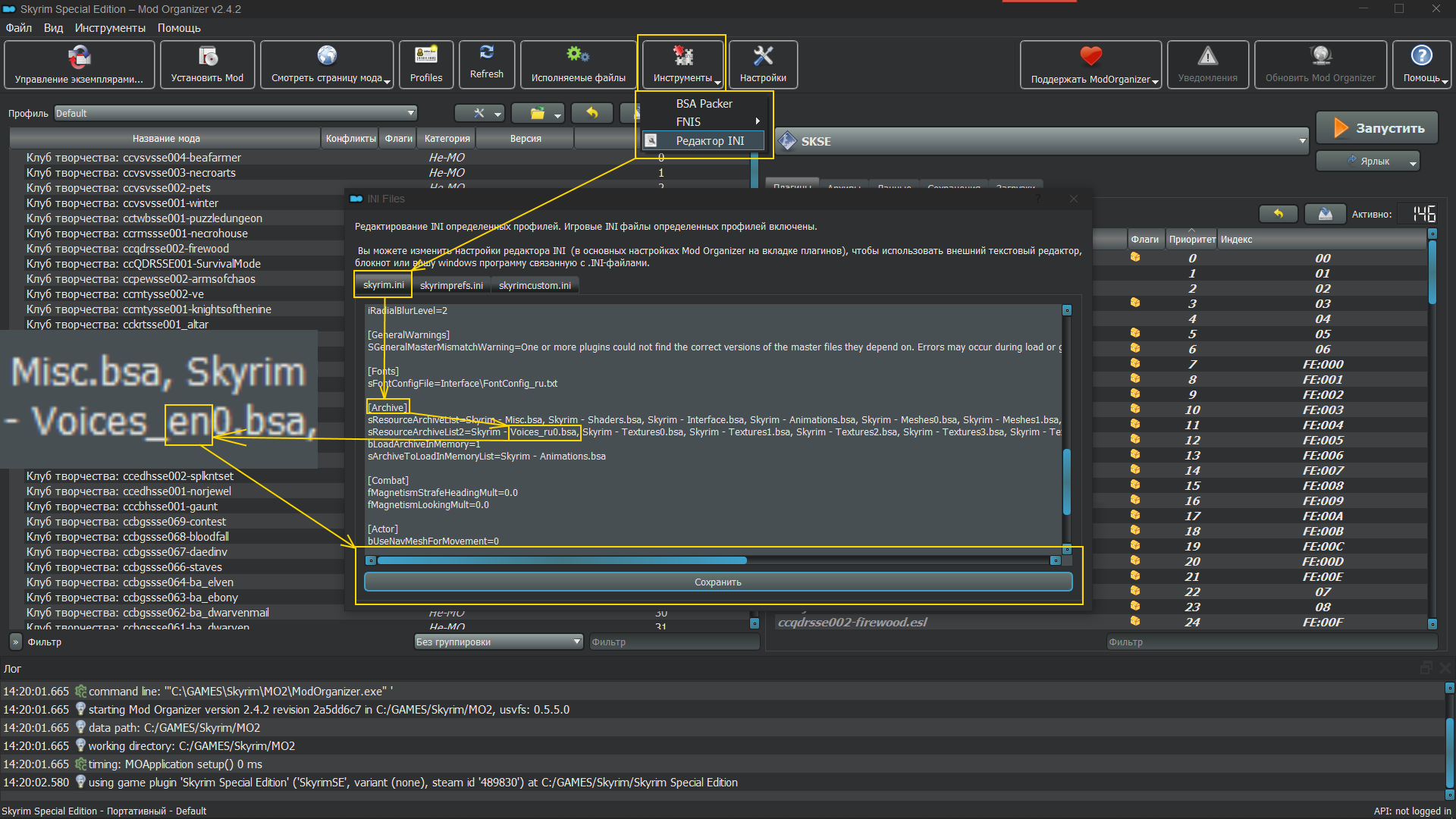 Также заменен мод "Amazing Follower Tweaks" на русифицированный "Управление компаньонами (SE)".