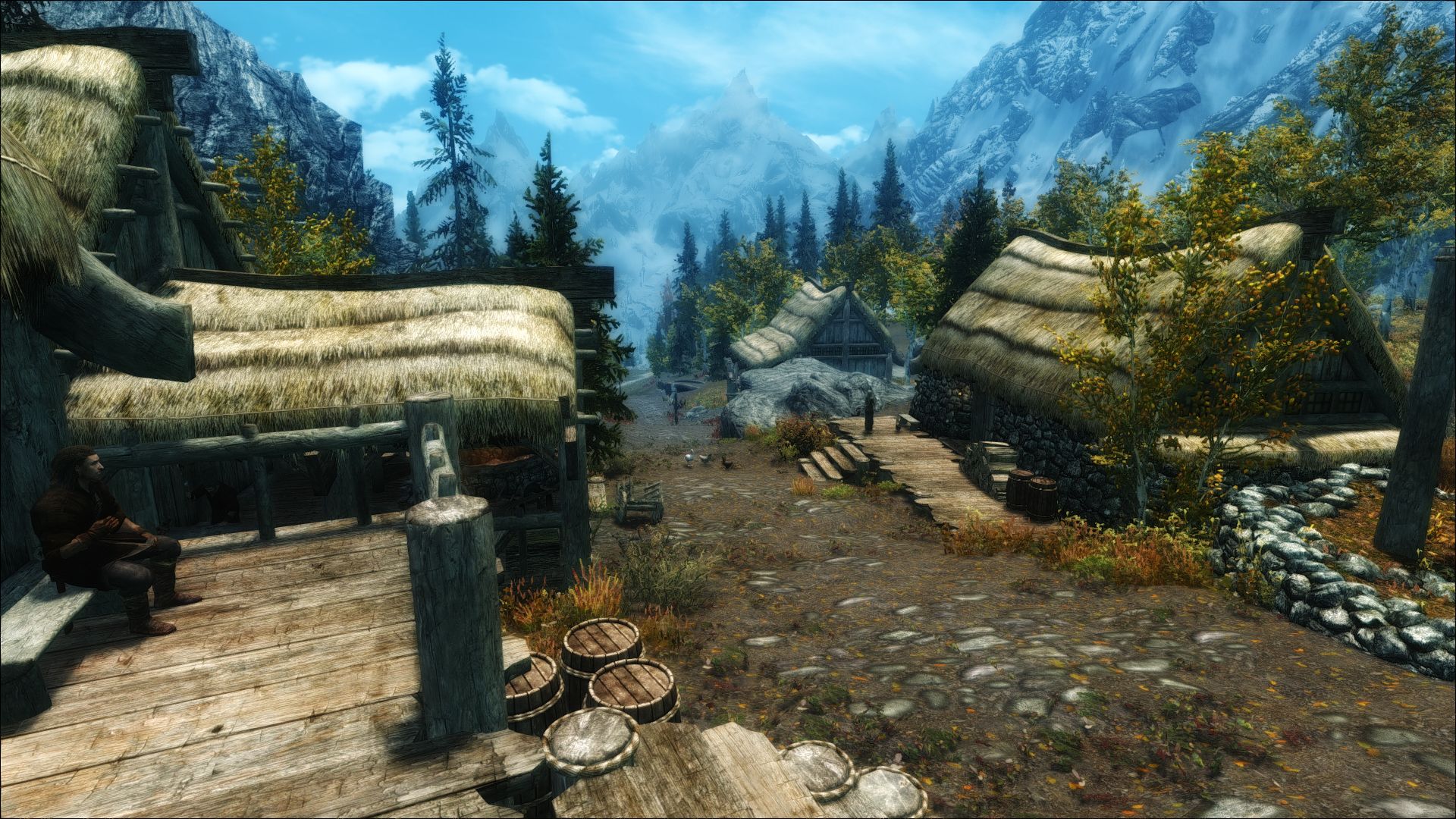 -Отсутствие Fast Travel, путешествовать по Скайриму придется на своих. Даже повозки не перевозят моментально, во время езды в повозке вы сможете любоваться миром.
