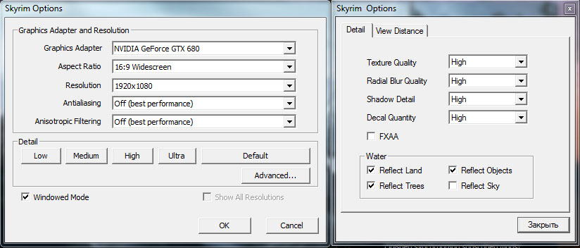 Очень важно отключить в игре и в параметрах видеокарты AA и AF, так как ENB использует свое сглаживание, и если не отключить его в игре, FPS значительно упадет. Когда все настроите, выйдите из игры.