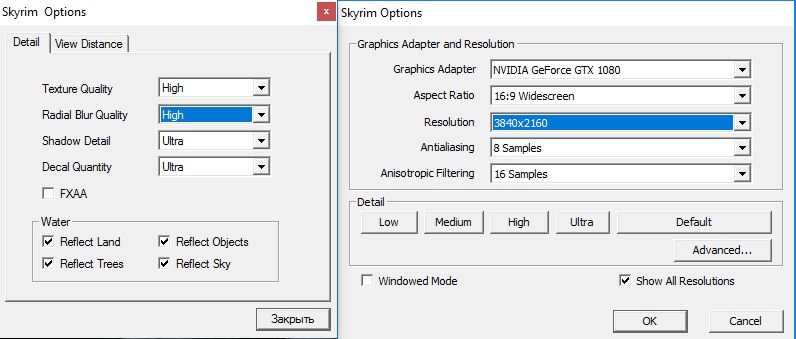 Тестирование при максимальных настройках качества 3840х2160 Skyrim: Special Edition