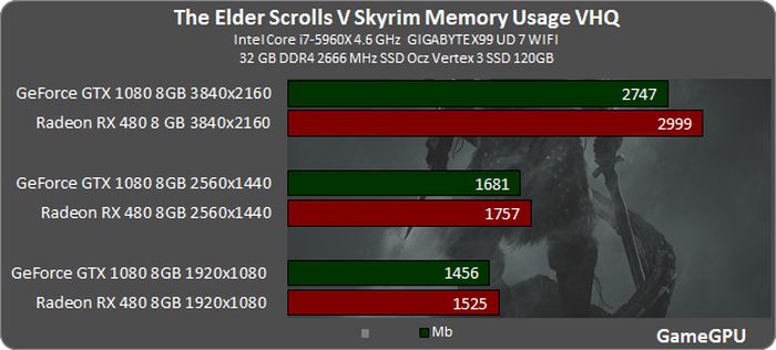 Тестирование при максимальных настройках качества memory GPU Skyrim