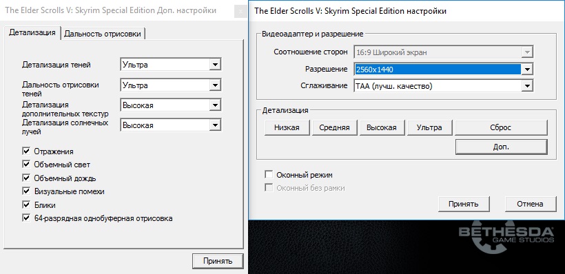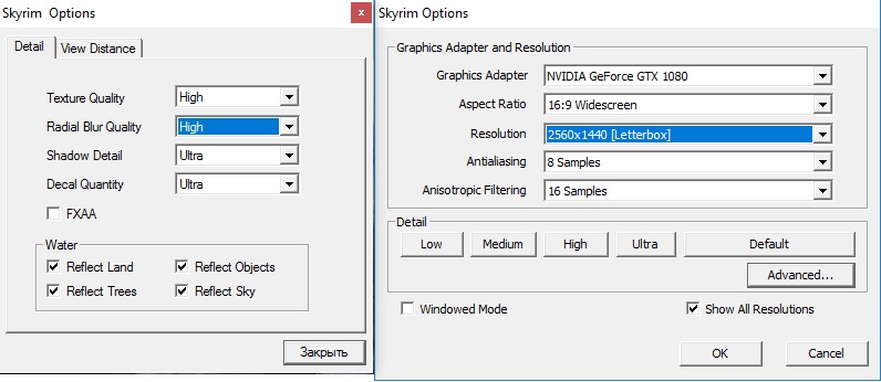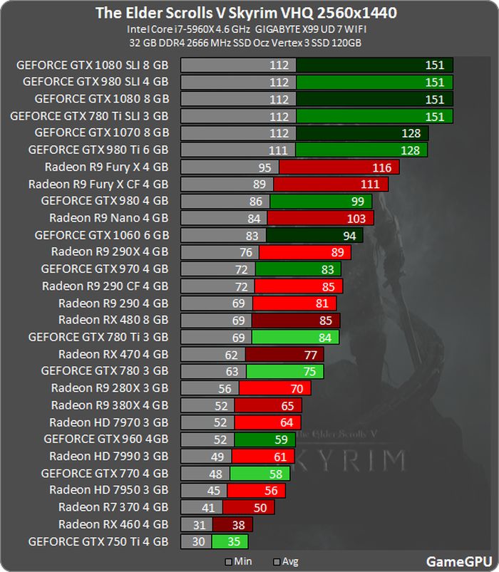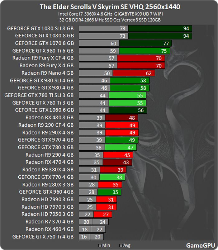 Тестирование при максимальных настройках качества 2560x1440 Skyrim: Special Edition